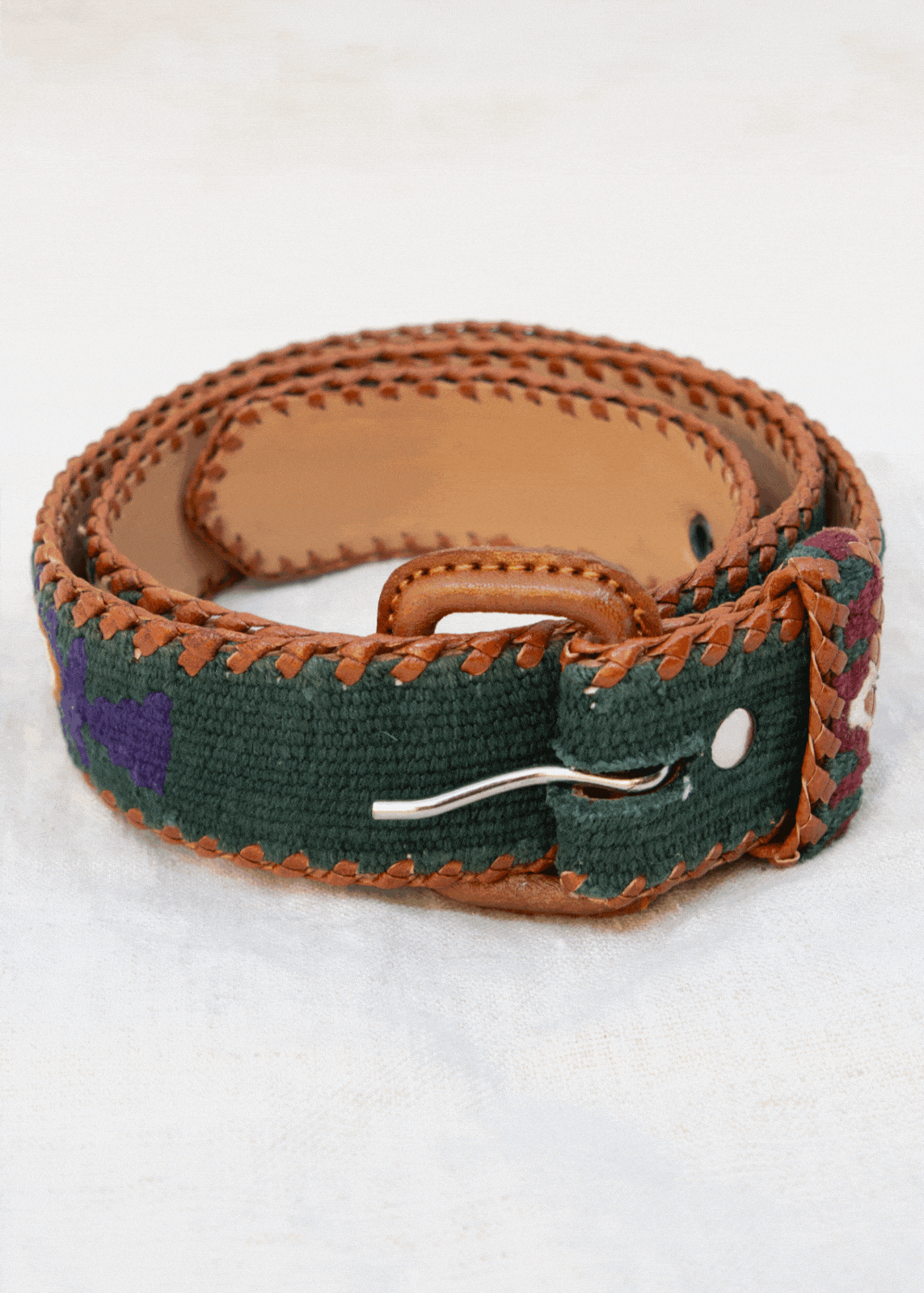 The textile is handwoven on a traditional Guatemalan backstrap loom and paired with premium vegetable-tanned leather, finished with a hand-laced edge. No two belts are ever exactly alike - a small variation here or there, telling its own little story through the hands of it's maker. Our belts soften and shape to your waist over time, made for every day and every body.